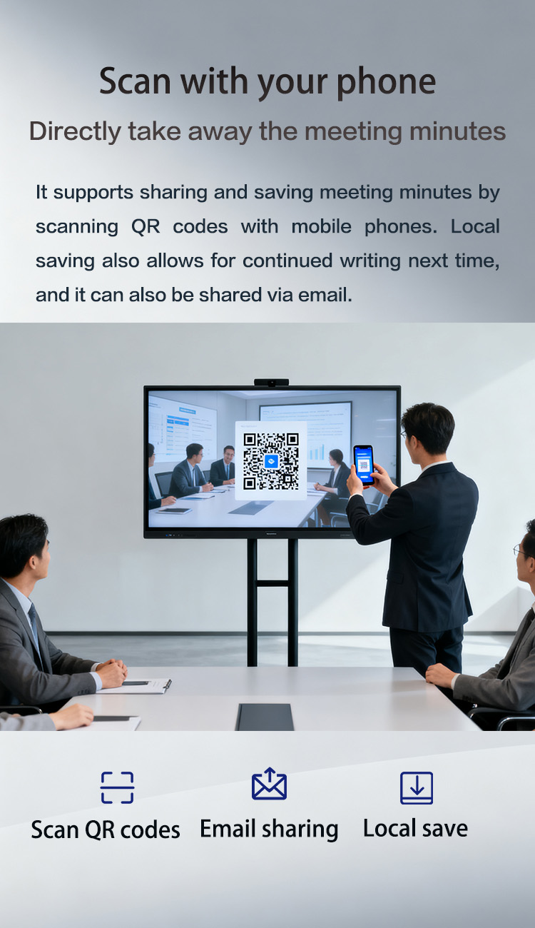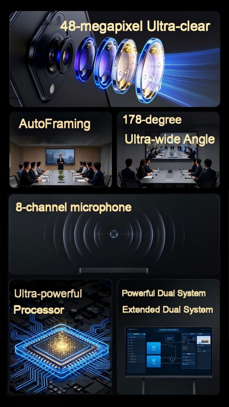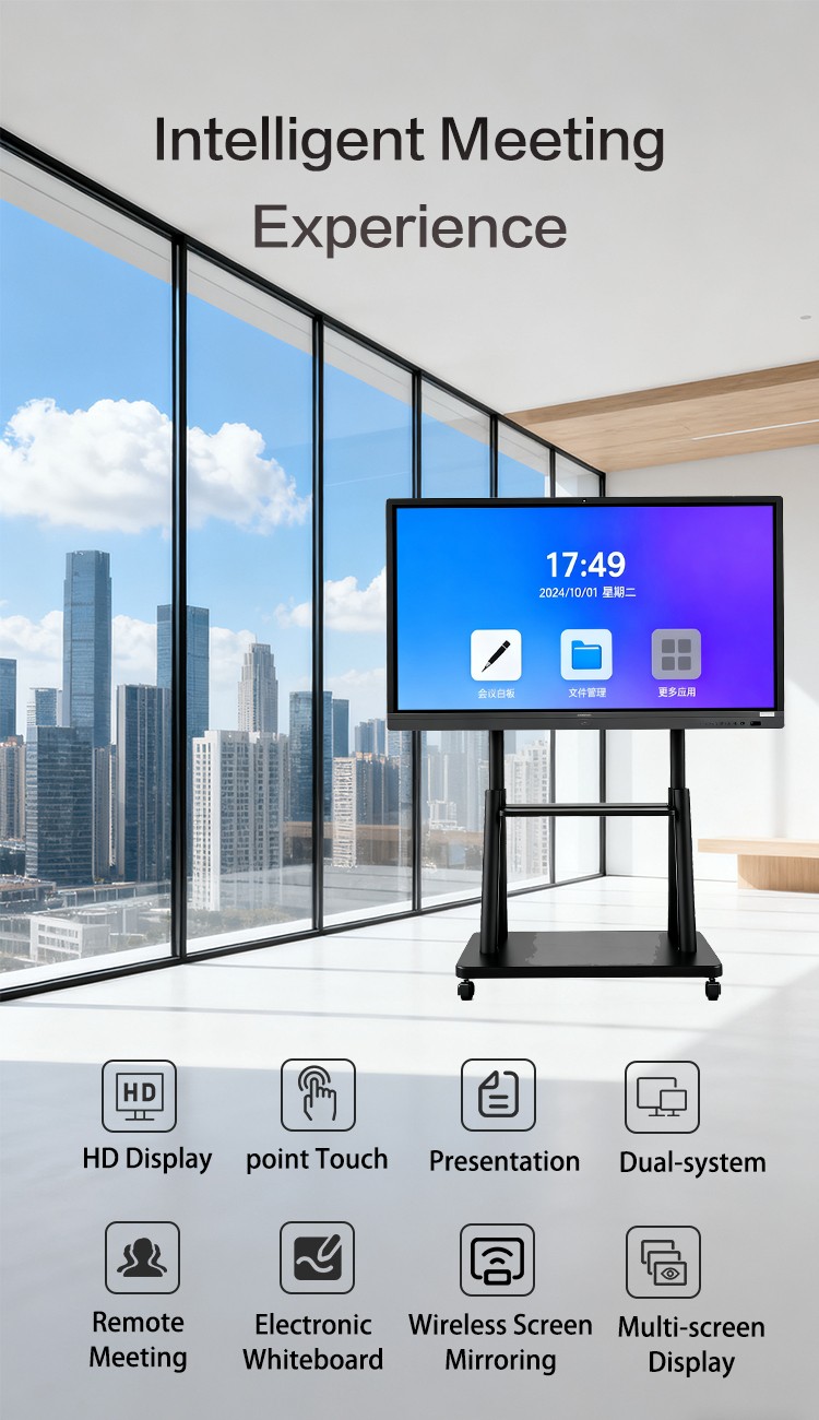 It integrates multiple functions such as TV, projector, electronic whiteboard, advertising machine and audio system, and is capable of remote video conferencing.